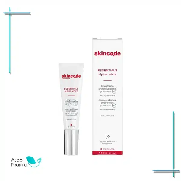 فلوئید ضدآفتاب روشن کننده spf50 بی رنگ اسکین کد (Brightening protective shield spf50 – Skincode) از سری محصولات اسنشیال اسکین کد مدل ALPINE WHITE حاوی ترکیب CM-GLUCAN جهت تقویت سیستم ایمنی، ترمیم زخم و بهبود التهاب و با توانایی در ترمیم و بازسازی پوست می باشد.