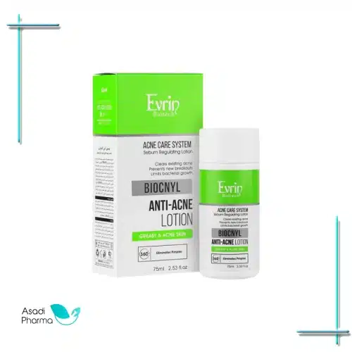 یکی دیگر از ترکیبات موثره موجود در لوسیون آنتی آکنه اورین، نیاسین آمید است که با تداخل در فرآیند سنتز رنگدانه پوست، از تیره شدن پوست و ایجاد لک ناشی از جوش جلوگیری می کند. وجود سالیسیلیک اسید در این لوسیون، با لایه برداری ملایم سلول های مرده به بهبود سریع آکنه کمک می کند. لوسیون ضد جوش evrin در حجم 75 میلی لیتر تولید شده و استفاده از آن به علت داشتن ترکیبات رطوبت رسان، مانع از خشکی پوست می شود.